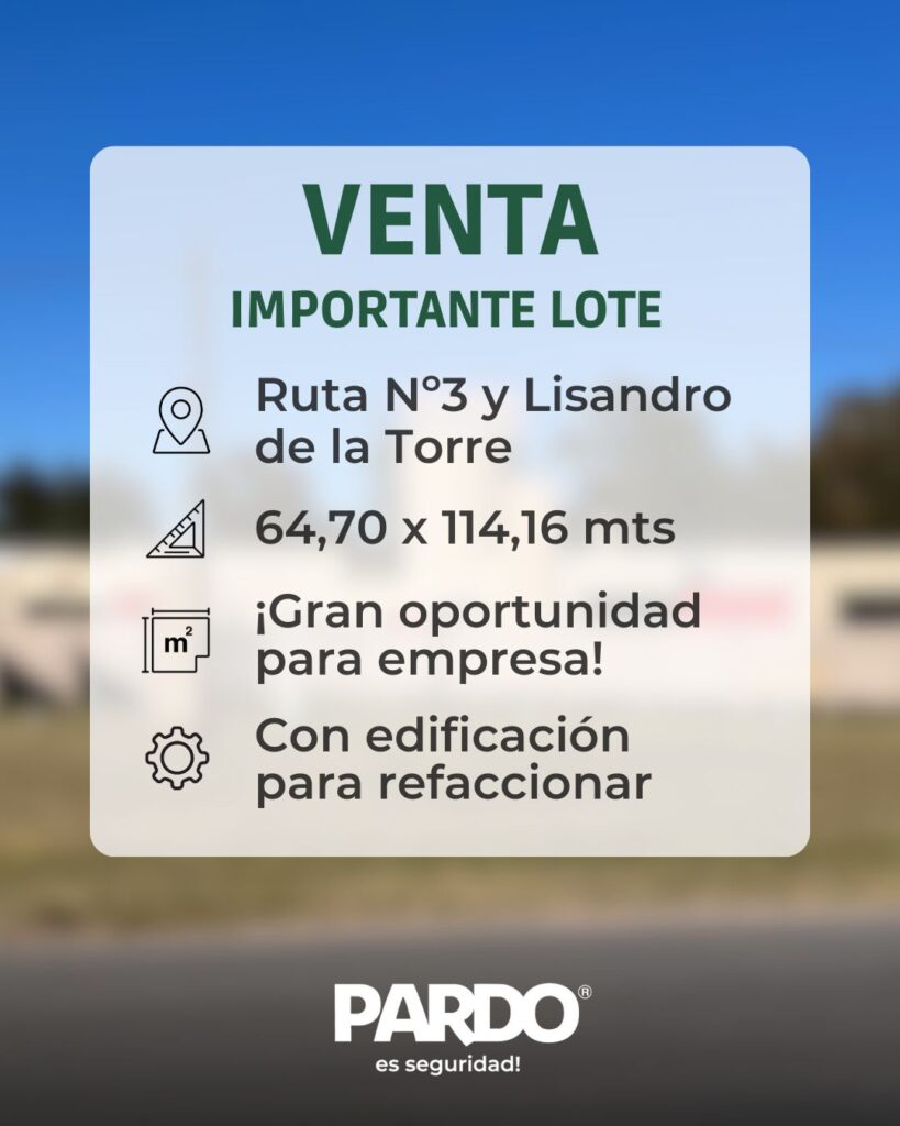 VENDEMOS EN EL ACCESO PRINCIPAL DE LA CIUDAD SOBRE RUTA Nº 3